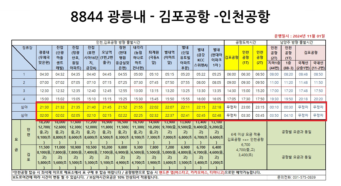남양주(진접, 오남, 별내) 심야 공항버스(N8844)