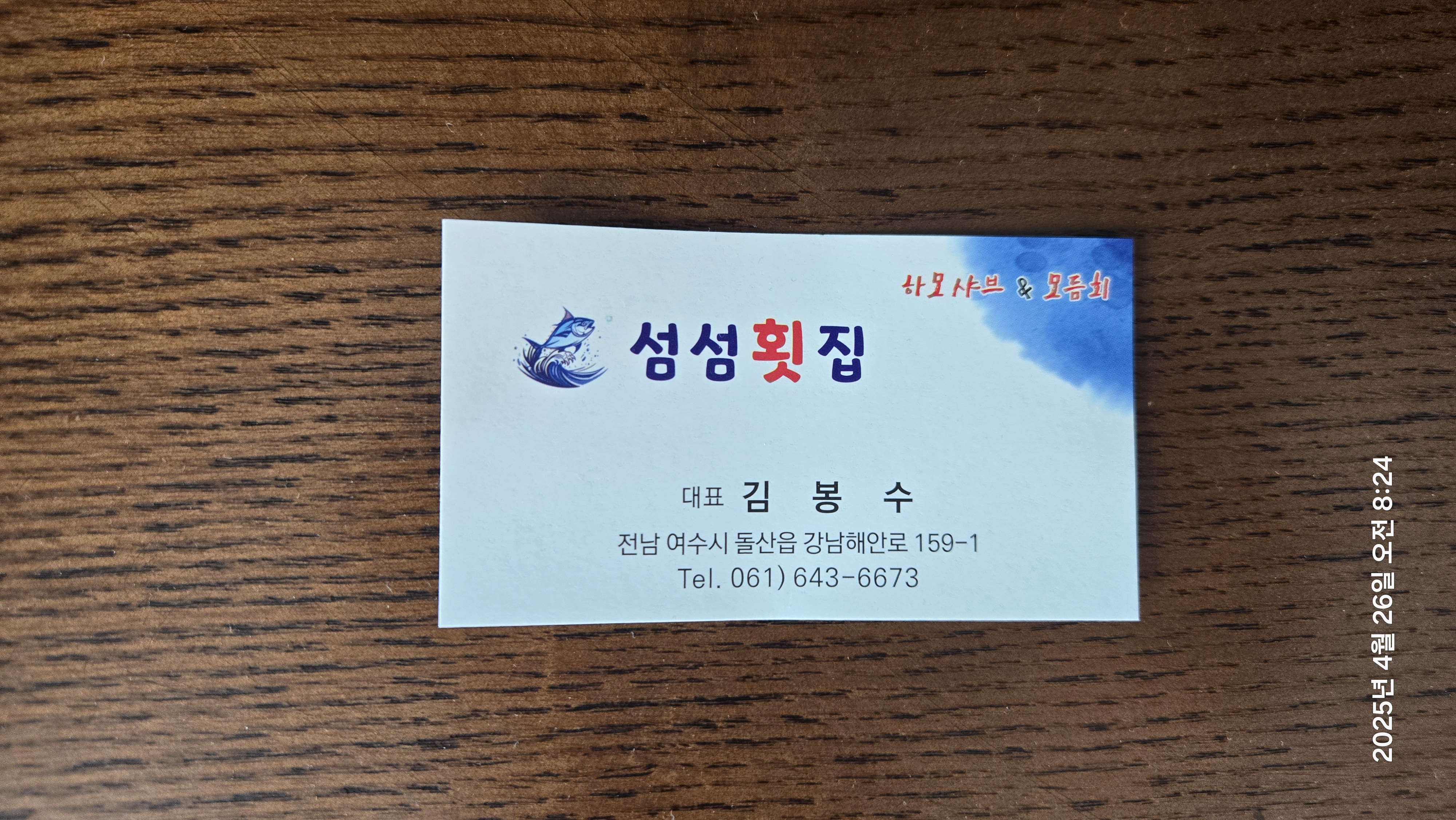 섬섬횟집은 전남 여수시 돌산읍 우두리 1120-7 에 위치한 횟집으로
