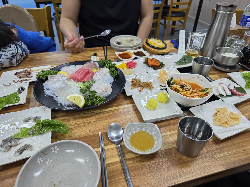 해당 구성은 메인회는 감성돔, 도미, 광어, 참치 이렇게 구성되어 나왔고, 해산물(전복,멍개, 산낙지, 해삼, 낚지호롱, 전복 등), 기본반찬(새우, 새우장, 떡 등 이외 다수), 신기하게 소고기 맛이나는 참치머리 구이, 샤브샤브(복어, 바다장어,전복), 튀김 등 정말 상다리가 부러지게 나왔는데 제가 엄청난 대식가인데.. 다먹지도 못했네요 ㅎㅎ