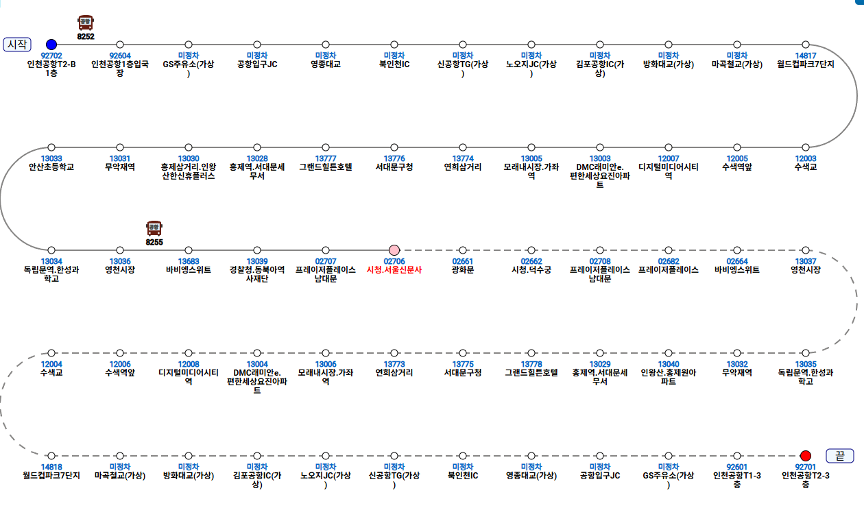 | 예매방법 | 공항방면(버스 정류장에서 선착순 탑승) 서울시청 방면(탑승위치 바로 이동하기) |