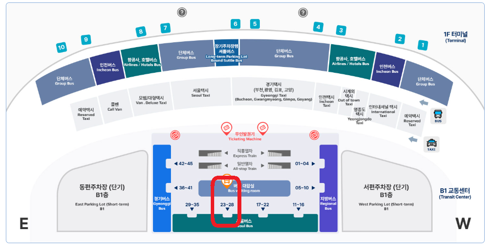 🚏 공항버스 서울방면 탑승위치